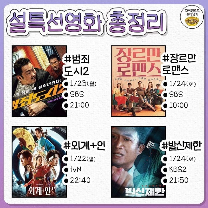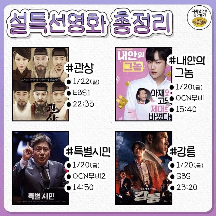 이번 설에 재미있는 설 특선영화 감상 즐겁게 하시기 바랍니다.