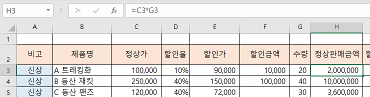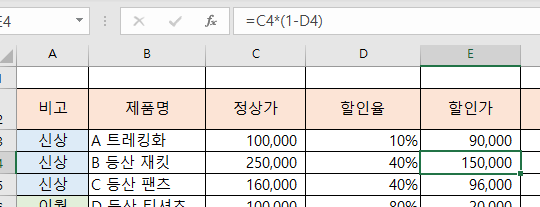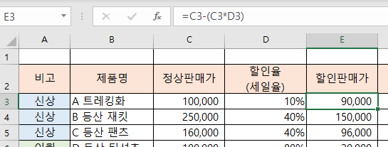 [형광*정상가 * (1 - 할인율) = 할인가*]